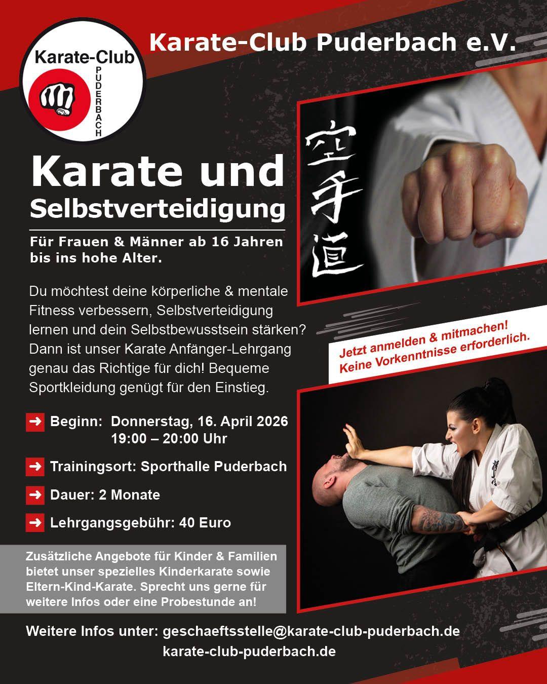 Neuer Anfängerlehrgang Karate und Selbstverteidigung ab Donnerstag, 16. April 2026